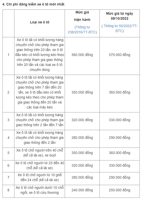 5. Chi phí cấp Giấy chứng nhận đăng kiểm xe ô tô