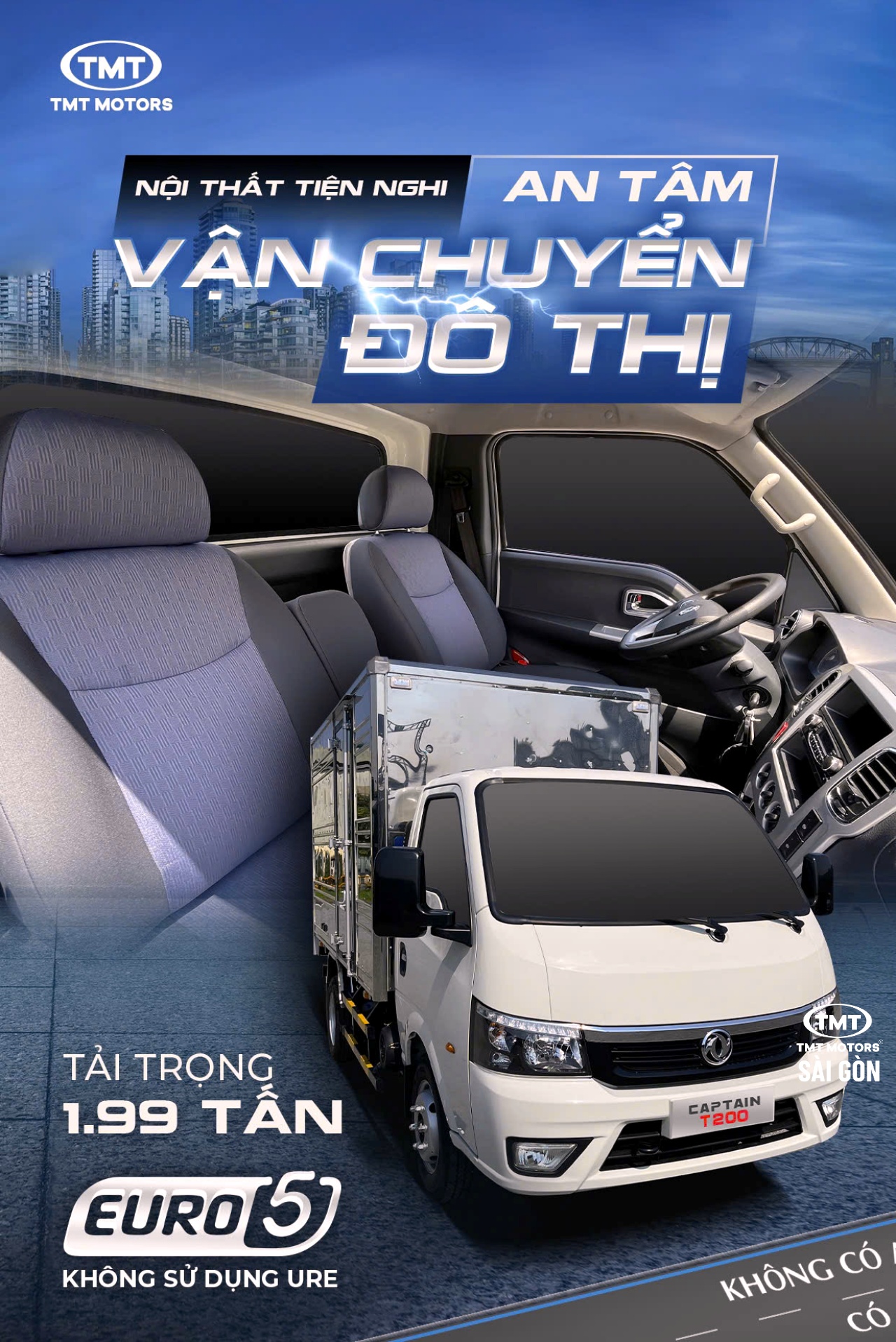 CAPTAIN T200 TẢI TRỌNG 1.99 TẤN: NỘI THẤT TIỆN NGHI, AN TÂM VẬN CHUYỂN ĐÔ THỊ