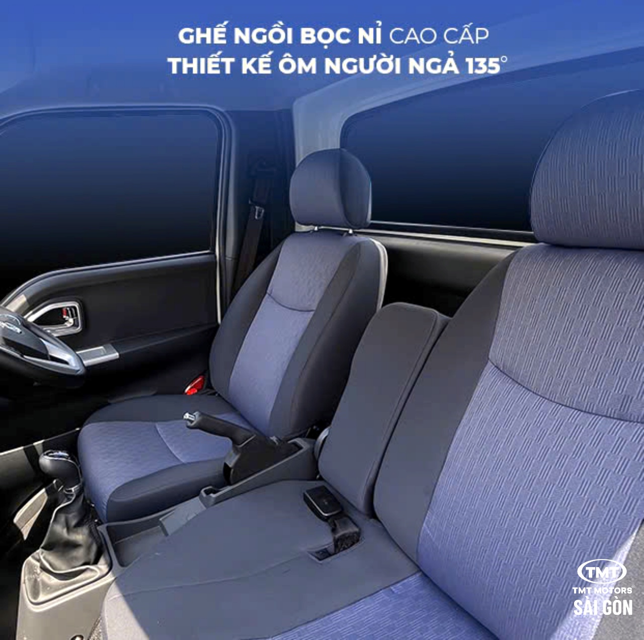 Ghế ngồi bọc nỉ ôm sát, sở hữu khoảng rộng phía sau 30cm và độ ngả 135 độ, đảm bảo sự THOẢI MÁI tối đa.