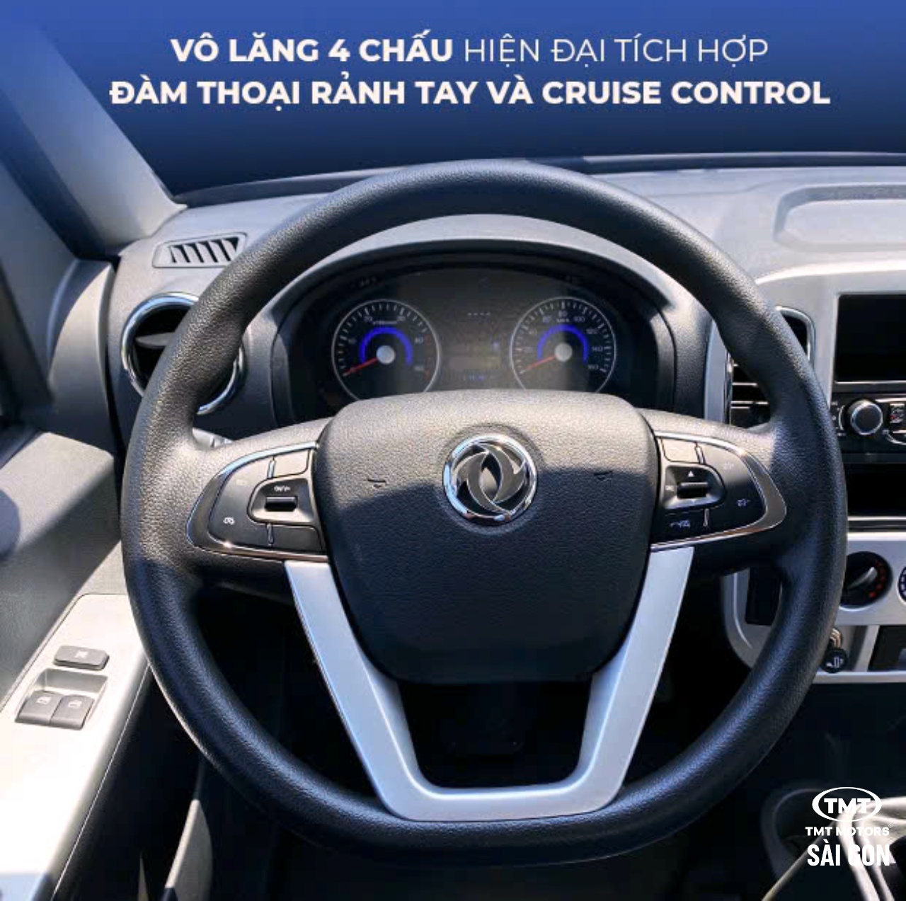 Vô lăng 4 chấu tích hợp đàm thoại rảnh tay và Cruise control, giúp bác tài DỄ DÀNG điều khiển xe trong những chuyến đi dài.