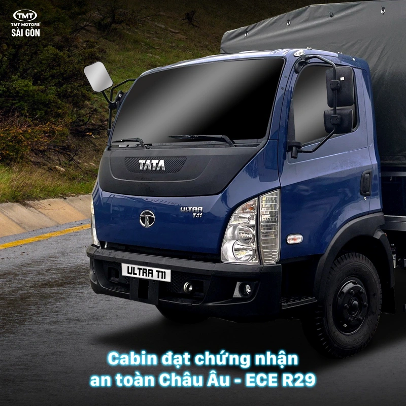- Nói về an toàn, TATA ULTRA được trang bị khoang cabin đạt tiêu chuẩn an toàn ECE R29 ban hành bởi ủy ban Kinh tế liên minh Châu Âu (ECE) – giúp bảo vệ cho người lái và hành khách khi xảy ra va chạm.